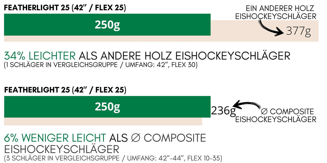 Until now, wooden sticks faced two significant disadvantages: they were very heavy and had limited flex. By utilizing our ultra-light wooden core, we were able to change this while preserving the natural feel of wood. Additionally, we optimized the geometry of the shafts and added a customizable grip.
